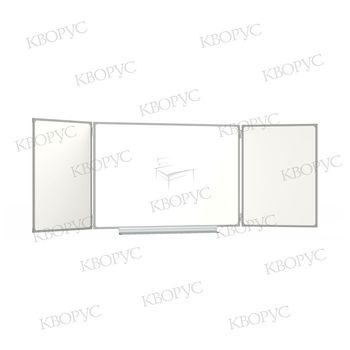 Доска для учебных заведений, состоит из центрального элемента и двух поворотных. Размер доски 3018х1010 мм в открытом виде.